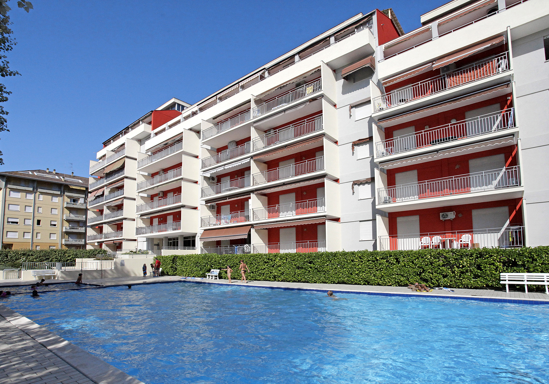Die Residenz Acapulco ist ideal gelegen, nur 300 Meter vom Strand entfernt, und verfügt über einen Aufzug und einen schönen Swimmingpool für Erwachsene und Kinder, perfekt für Abkühlung und Spaß an Sommertagen.