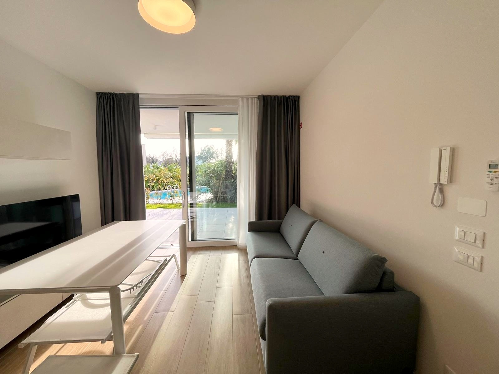 Das angebotene Apartment ist eine Dreizimmerwohnung im Erdgeschoss mit zwei Schlafzimmern und einem privaten, großzügigen und gut ausgestatteten Garten, der einen angenehmen Blick auf den Pool bietet.