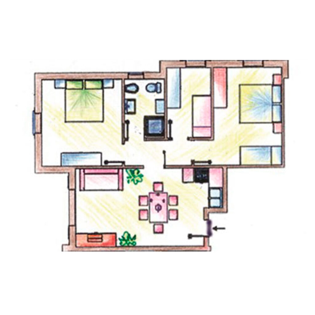 Die hier gezeigten Grundrisse sind nur ein Anhaltspunkt für die Zusammensetzung der Wohnungen und der Einrichtung, die Sie in den Anlagen in Bibione, Caorle, Porto Santa Margherita, Caorle Lido Altanea, Lido di Jesolo und Ca‘ di Valle finden.