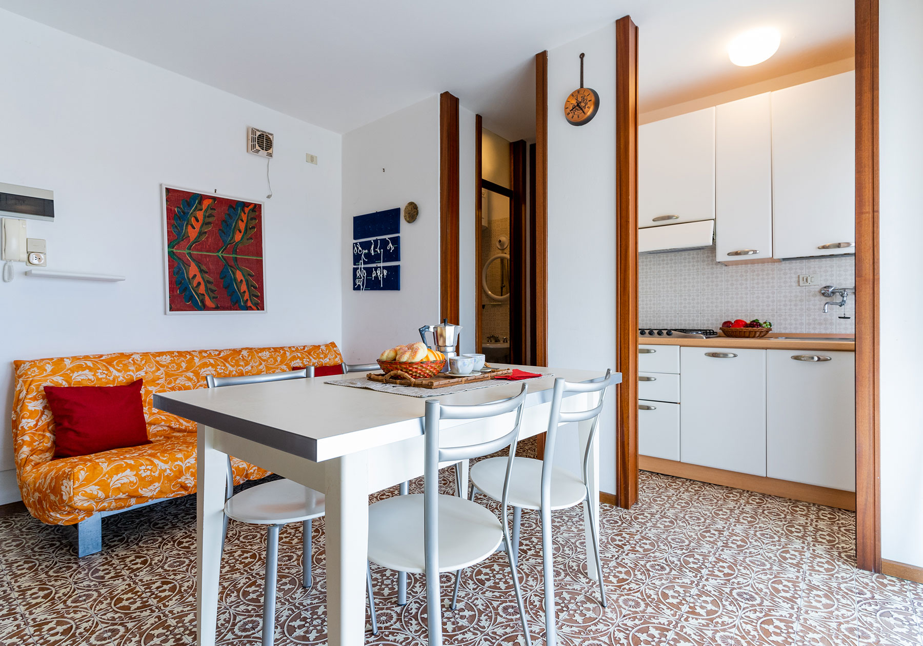 Angela is a beachfront condominium located in the Bosco Canoro area of Bibione Lido del Sole, renowned for its quietness. Penthouse apartments with beautiful sea views, some with two bathrooms. Each apartment has a numbered parking space. The beach is about 50 meters away and is equipped with umbrellas and sunbeds included in the price. Animazione gratuita in spiaggia e la sera presso lo Sporting Bar.