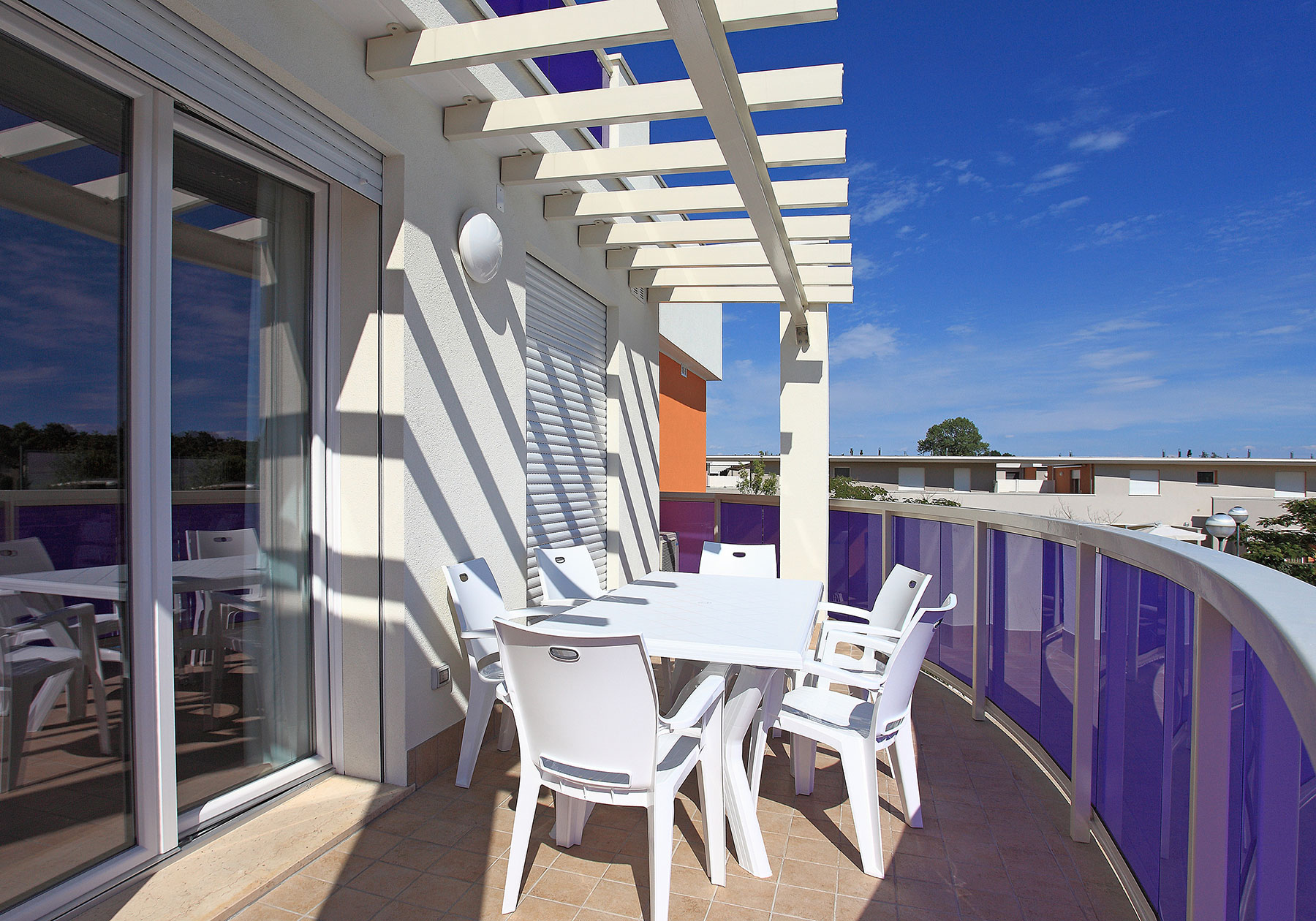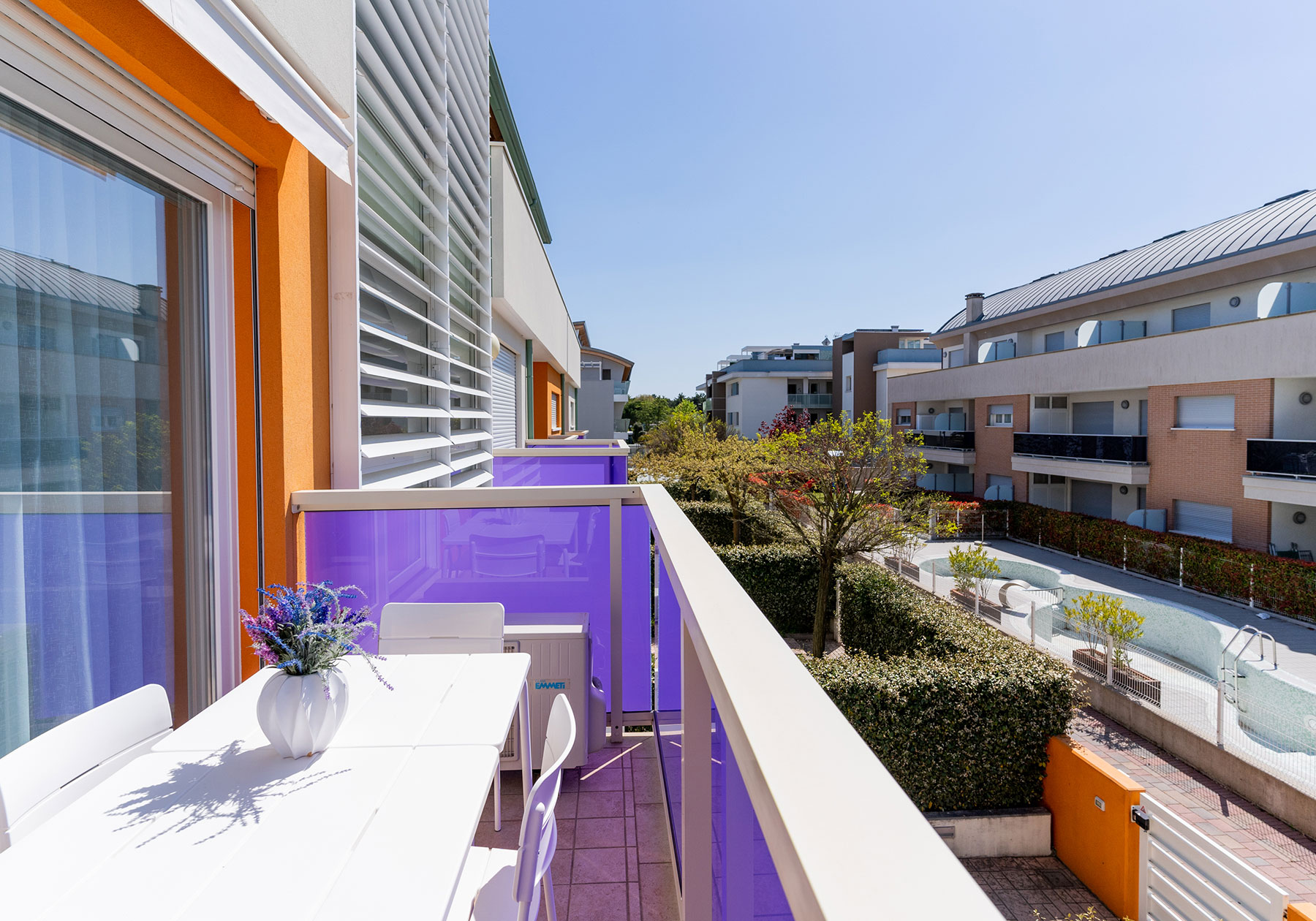 Comodi ascensori collegano direttamente l’autorimessa ai piani del residence, dove sono disponibili anche una lavanderia a gettoni e la connessione Wi-Fi gratuita, fruibile sia nella zona piscina che all’interno degli appartamenti.